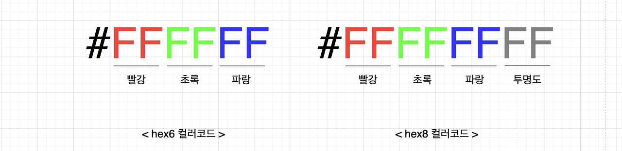 - 헥사 코드의 경우 아래 그림과 같지만 투명도 위치만 젤 앞에 위치해 있다.